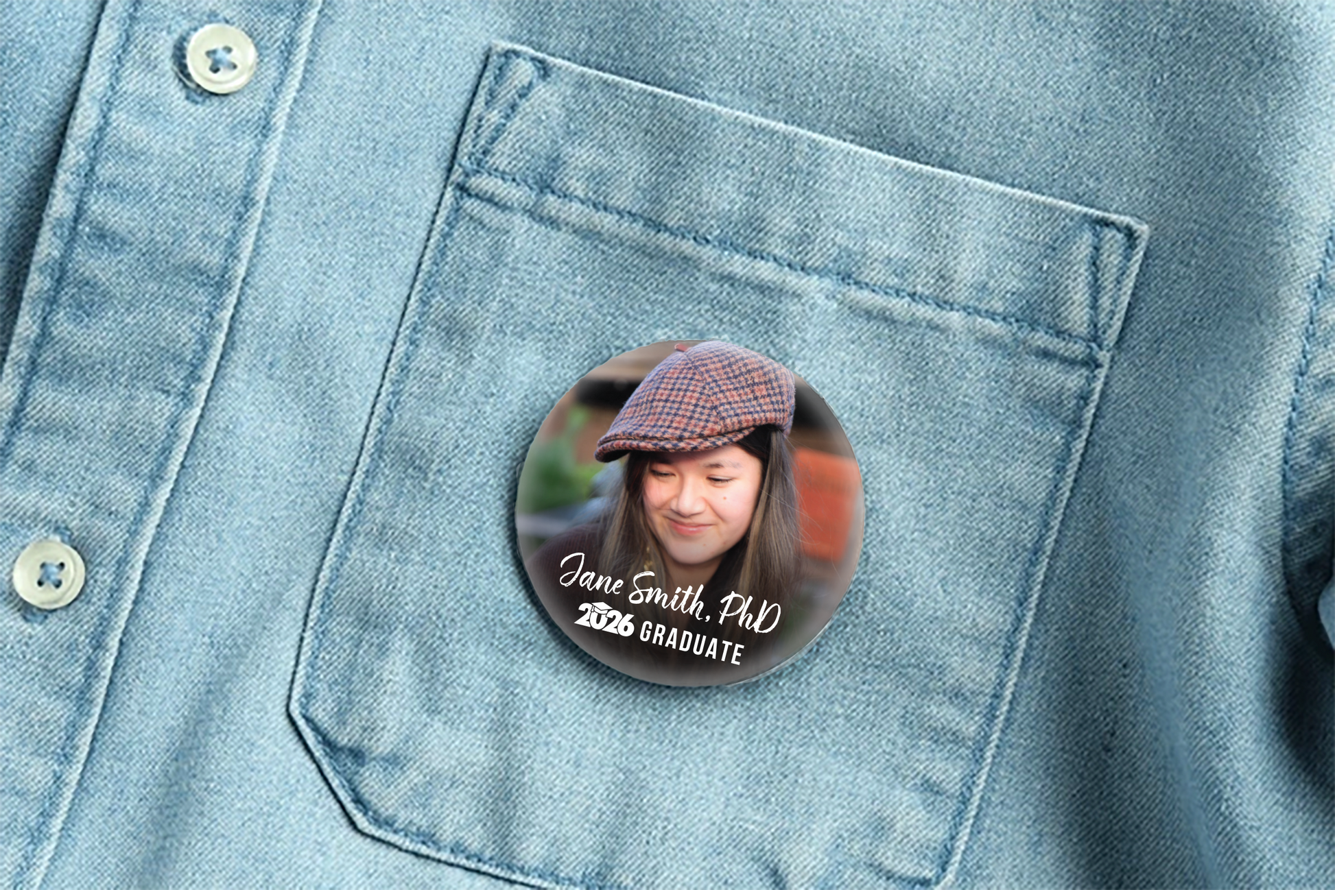 Celebrate your favorite graduate with a custom photo pin! These large 3-inch pins are perfect for showcasing school pride, highlighting achievements, or adding a personal touch to grad parties and ceremonies.