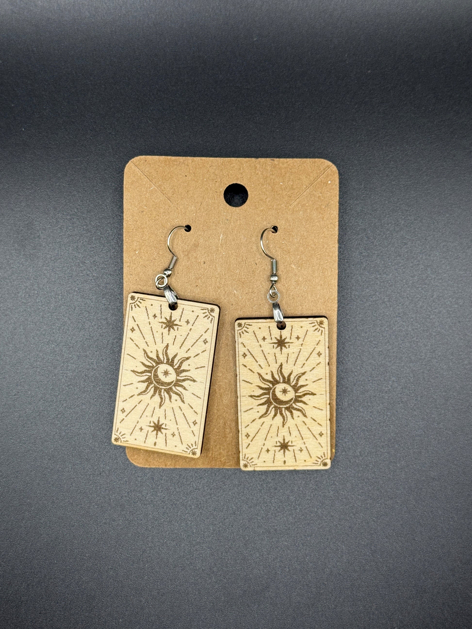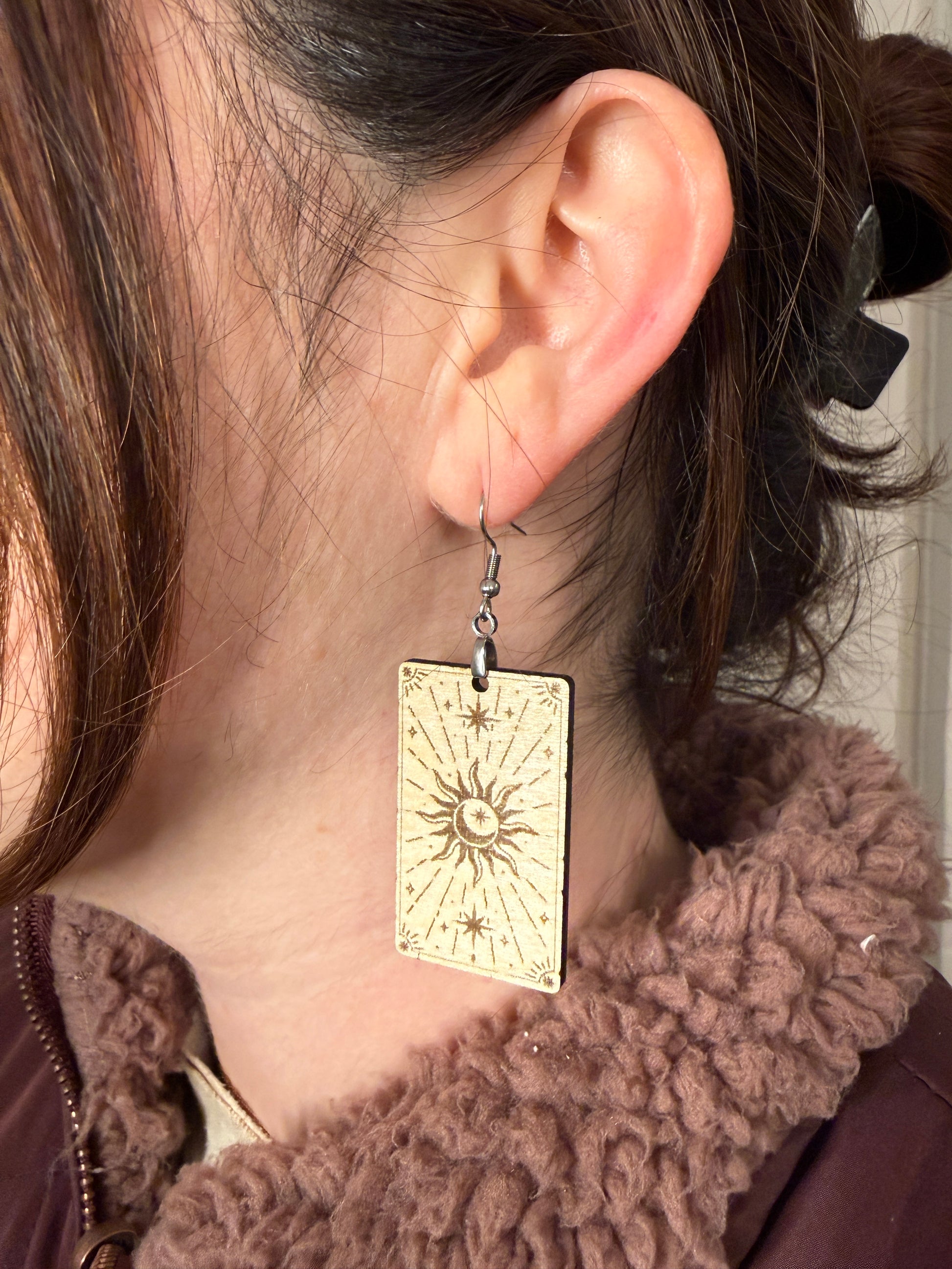 Sun & Moon Tarot Card Earrings – Laser Engraved Wooden Dangles